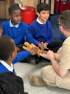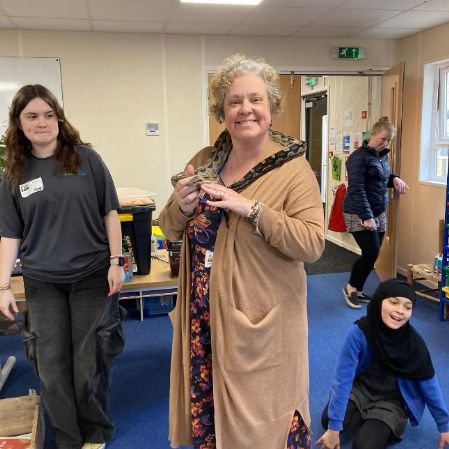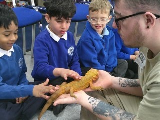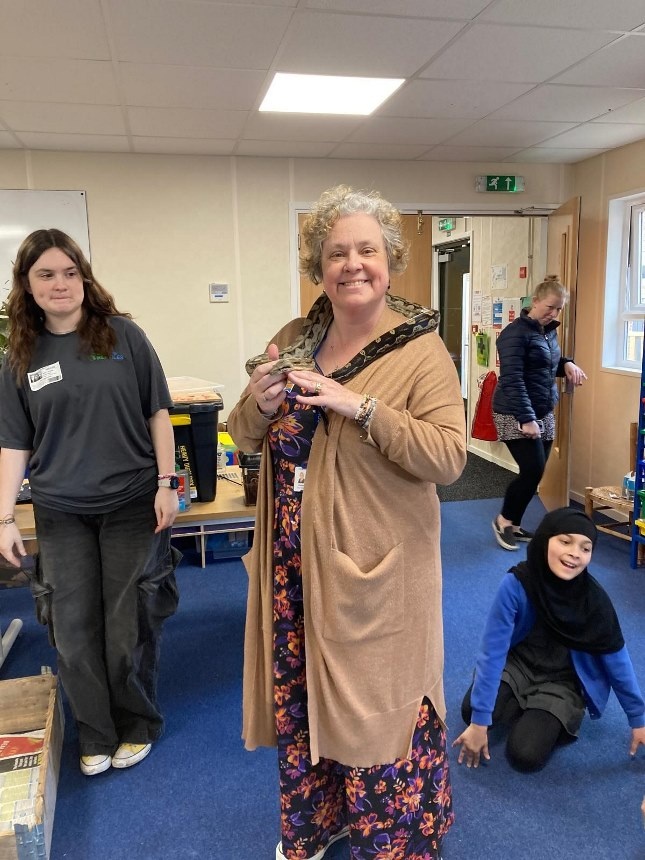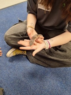 Riverview Reptiles came to visit us and bought with them a variety of exotic animals, including a snake, a leopard gecko, giant millipedes, and Mrs Spike!
